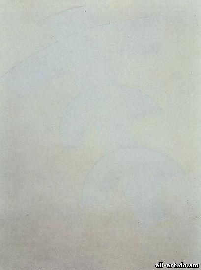 К. С. Малевич. Супрематизм. 1928-1929 гг. Государственный Русский музей, Санкт-Петербург Быстро пройдя в своем супрематическом творчестве три основных этапа с 1913 по 1918 г., он одновременно, и особенно, начиная с 1919 г., пытался осмыслить суть открытого им пути и направления. При этом наблюдается смена акцентов и тональности в понимании сути и задач супрематизма от экстремистски-эпатажного манифестирования в работах 1920-23 гг. к более глубоким и спокойным рассуждениям 1927 г. В брошюре-альбоме 1920 г. "Супрематизм. 34 рисунка" Малевич определяет три периода развития супрематизма в соответствии с тремя квадратами — черным, красным и белым — как черный, цветной и белый. "Периоды были построены в чисто плоскостном развитии. Основанием их построения было главное экономическое начало одной плоскостью передать силу статики или видимого динамического покоя". Стремясь освободить искусство от внехудожественных элементов, Малевич своим черным и белым "периодами" фактически "освобождает" его и от собственно художественных, выводя "за нуль" формы и цвета в некое иное, практически внехудожественное и внеэстетическое измерение. "О живописи в супрематизме не может быть речи. Живопись давно изжита, и сам художник предрассудок прошлого", — эпатирует он публику и своих коллег-художников.