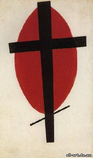 К. С. Малевич. Супрематизм (Черный крест на красном овале). 1921-1927 гг. Стеделик музеум (Городской музей), Амстердам. Вокруг Малевича было много подражателей, но ни один из них не проник в истинный дух супрематизма и не смог создать ничего, хоть как-то по существу (а не по внешней форме) приближающееся к его работам. Это касается и конструктивизма. Конструктивисты заимствовали и развили некоторые формальные находки Малевича, не поняв или резко отмежевавшись (как Татлин) от самого по сути своей гностико-герметического, а в чем-то даже и интуитивно-буддистского духа супрематизма. Да и сам Малевич, как интуитивный эстет и приверженец "чистого искусства", резко отрицательно относился к "материализму" и утилитаризму современного ему конструктивизма. Более последовательных продолжателей супрематизма следует искать скорее среди минималистов и некоторых концептуалистов второй половины XX в. |