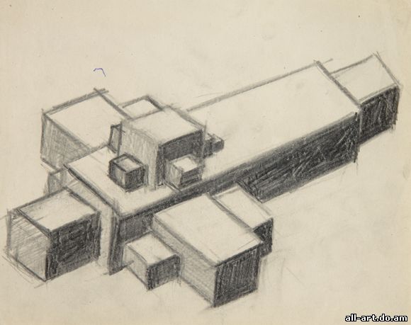И. Г. Чашник. Архитектонические объемы. 1925—1926. Бумага, карандаш; 15×21.5 см