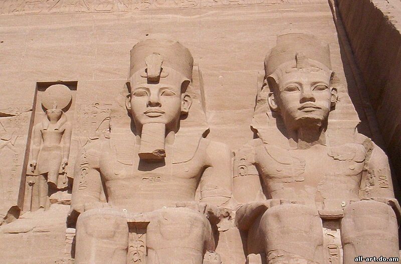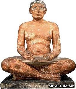 3. В облике бога Осириса - стоящая фигура с руками, сложенными на груди и держащими символы царской власти (жезл и бич). Деревянные фигурки, изображающие царя По подобию царских создавались скульптуры вельмож. Скульпторы использовали камень, дерево, слоновую кость. Предпочитались твердые породы камня (гранит, базальт, порфир и др.). Статуарный образ вычерчивали на гранях прямоугольной каменной глыбы, а затем высекали; поэтому в египетских изваяниях всегда ощущается первоначальный кубический объем. Статуи обращены к Вечности; из них изгнано все случайное, второстепенное. Строгая симметрия, неподвижность, лаконизм и обобщенность форм усиливали ощущение монументальности, незыблемости, торжественного величия. В то же время статуарные образы потрясающе жизненны: связь скульптурного изображения с заупокойным культом требовала передачи портретного сходства (бюст царевича Анххафа, сер. 3-го тыс. до н. э.; статуи зодчего и визиря Хемиуна, 27 в. до н. э., писца Каи, сер. 3-го тыс. до н. э., царевича Каапера, сер. 3 тыс. до н. э.; портретные группы царевича Рахотепа с женой Нофрет, первая пол. 3-го тыс. до н. э., и карлика Сенеба с семьей, 25 в. до н. э.).