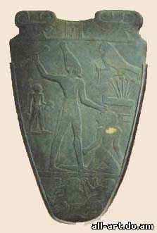 Выдающийся памятник - стела фараона Нармера (кон. 4 - нач. 3-го тыс. до н. э.), посвященная победе Верхнего (Южного) Египта над Нижним.