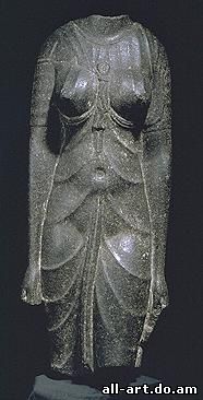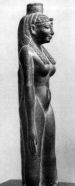 Гробницы знати саисского времени сохранились в разных частях Египта, причем и форма их соответственно различна. Гробницы крупнейших фиванских вельмож состояли из ряда вырубленных в скале помещений, в числе которых были и колонные залы. Снаружи перед подобной усыпальницей пристраивались обнесенные кирпичными расписанными стенами дворики с пилонами, причем иногда эти стены были украшены таким же способом, как и стены зданий Древнего царства. Это было одним из проявлений того общего стремления к воспроизведению образцов древнего искусства, которое становится отличительной чертой памятников саисского времени. Эта архаизация не ограничивалась рамками искусства, она прослеживается и в литературе и в религии этого периода и была вызвана причинами политического характера. Саисские фараоны, пытаясь возродить древние традиции, тем самым подчеркивали свое намерение создать столь же независимое и могущественное государство, каким был Египет при строителях пирамид. Этому в известной степени способствовало и то, что центр политической жизни оказался на севере. Внимание к прошлому проявлялось самыми различными способами. В администрации вновь создаются давно исчезнувшие должности. Восстанавливаются культы древних царей, реставрируются древние храмы. Особенно отчетливо заметны эти тенденции в искусстве. Гробницы знати на севере, в Саккара, воспроизводят форму мастаба с глубокими шахтами, на дне которых из каменных плит выкладывались камеры в форме саркофагов Древнего царства, со сводчатым потолком, иногда очень разработанной конструкции. Тело Исиды. 3-1 века до н.э., диоритовая статуэтка высота 63 см.