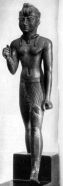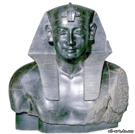 Тем не менее мы можем выделить группу произведений официального искусства - статуи царей и ряд статуй знати и жречества, идеализирующие и холодные, с условной улыбкой на невыразительных лицах и стандартной трактовкой тел. К этой группе памятников примыкают и многочисленные бронзовые статуэтки божеств, таким же, как и у каменных скульптур, высоким качеством отделки, украшенные инкрустациями из золота или электра. В то же время имеются памятники совершенно иного плана, с явным интересом к передаче конкретной действительности, с острой реалистической характеристикой образа. Продолжало развиваться художественное ремесло, причем необходимо отметить появление нового типа фаянса - очень твердого и насквозь окрашенного. Саисское искусство имело существенное значение для последующего развития египетского искусства, которое еще далеко не исчерпало своих возможностей. Архитектура Египта периода Позднего Царства (11 в.– 332 г. до н.э.) представляло собой сложную картину. Во времена длительных распадов государства не велось никакого крупного строительства. Последнее возобновлялось лишь в недолгие периоды укрепления страны при ее объединениях. Именно в такие периоды были произведены последние крупные дополнения Карнака – строительство еще одного двора с портиками и гигантским пилоном высотой в 43,5 м, шириной в 113 м и толщиной в 15 м. Проход посередине двора был оформлен в виде монументальной колоннады с капителями в форме открытых цветов папируса. Превосходя по масштабам предшествующие сооружения Карнака, эти памятники не внесли ничего нового в египетскую архитектуру. Не добавили ничего существенного в ее развитие и царские гробницы этого периода. Найденные в Танисе гробницы фараонов XXI династии, представляли собой небольшие склепы, устроенные рядом с храмом прямо в песке и сложенные из каменных плит. Фараоны-эфиопы хоронились в столице Нубии, Напате; их гробницы имели форму небольших построенных из кирпича пирамид, отличающихся от египетских более крутым профиле. Стремление идеализировать далекое прошлое своей родины еще усилилось в последующие годы, когда Египет, объединенный под властью победителя Ассирии, саисского фараона Псамтика I, вновь стал независимым государством. Псамметих I (или Псамтик I, полное имя Уахибра Псамметих I) — фараон Древнего Египта (ок. 664 — 610 до н. э.), первый фараон XXVI Саисской династии. Сын номарха Нехо. Совместно с отцом выступал сначала против Ассирии, а затем на стороне Ассирии против Танутамона. После гибели отца в сражении с кушитами, Псамметих бежал в Ассирию и помогал Ашшурбанапалу выгнать из Египта Танутамона. Имя Псамметих, видимо, своим происхождением обязано эфиопскому языку и означает - "Сын Солнца". Воспользовавшись с затруднениями, которая испытывала Ассирия в середине VII в до н. э., Псамметих I объявил себя независимым правителем, приблизительно на 4 году правления (ок. 660). У нас нет каких-либо сведений, на основании которых мы могли бы судить, каким образом произошло отпадение Египта от Ассирии. Геродот в своём повествовании назвал виновником возвеличивания Псамметиха I верховного жреца Птаха. По Геродоту, после освобождения страны от эфиопов двенадцать правителей Египта собрались для жертвоприношений в храме Птаха (называемого Гефестом в труде Геродота) в Мемфисе, однако верховный ж