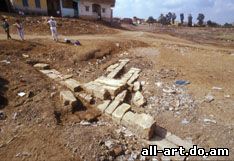 Храм Амона. Непат. Руины этого города были впервые описаны европейскими исследователями в 1820 году. При последующих исследованиях были обнаружены руины 13 храмов и 3 дворцов. Самый большой храм - храм Амона и по сей день считается священным среди местного населения. Город находился ниже четвертого порога Нила. Сегодня некоторые постройки в Напата входят в Список всемирного наследия Африки. Развалины этого древнего города расположены у подножия священной для древних египтян скалы Джебель-Баркал - места, где жил сам бог Амон и где был выстроен в честь этого бога большой храм. Несмотря на тяжелые последствия персидского завоевания (525 г. до н.э.), в недолгий период борьбы Египта за независимость (5 в. до н.э.) египетские художники создали еще ряд прекрасных памятников, продолжавших оба направления саисского искусства. Голова жреца Лучшим образцом реалистического портрета этого времени является известная голова жреца из зеленого камня После вторичного завоевания персами, а затем греко-македонцами в 332 году до н.э. Египет, сохранив политическую самостоятельность под управлением македонской династии Птолемеев, находит силы для нового расцвета искусств и создает такие памятники, как храмы в Эдфу, Эсне, Дендера, Филах.